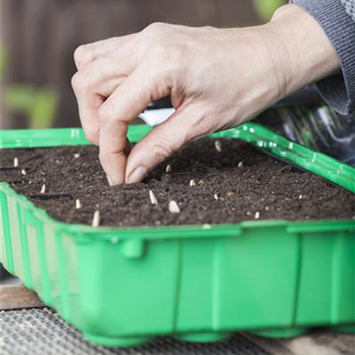 Ab März kann man als Gewächshausbesitzer die Gurken-Saat ausbringen. Auch auf der Fensterbank ist dies möglich, doch hier sollte man bis April warten, denn sind die Pflanzen beim Umsetzen in den Garten zu groß, ist dies nicht ideal. Für die Aussaat werden zwei bis drei Samen in einen Topf gesetzt und mit Erde bedeckt. Gleichmäßige Feuchte ist wichtig und gute Anzuchterde. Der kräftigste Sämling im Topf darf bleiben, die anderen werden entfernt. Am besten ist es für den Sämling, wenn zunächst der Topf nur halb voll mit Erde war und erst jetzt aufgefüllt wird. Denn das fördert die Wurzelbildung.
